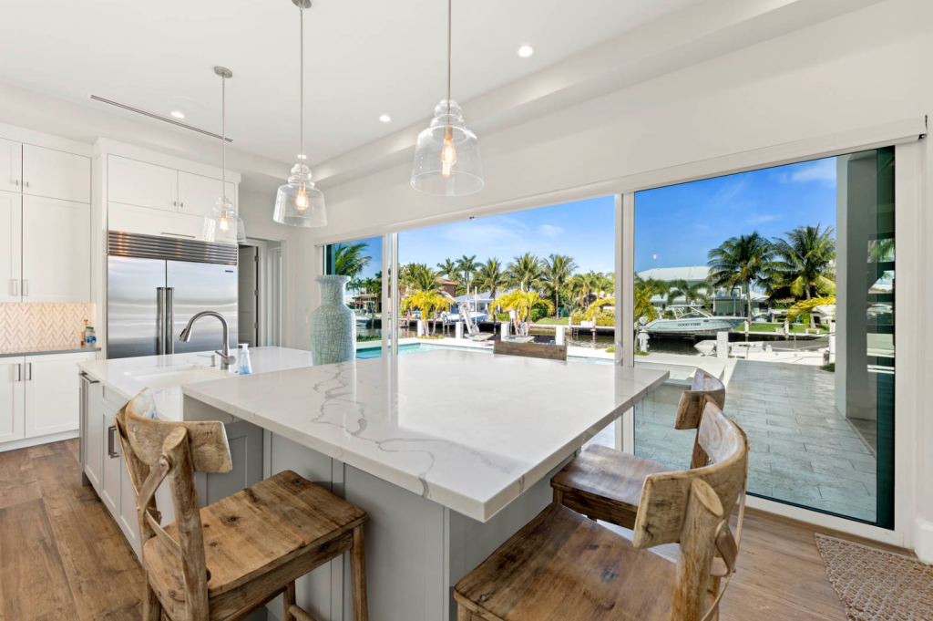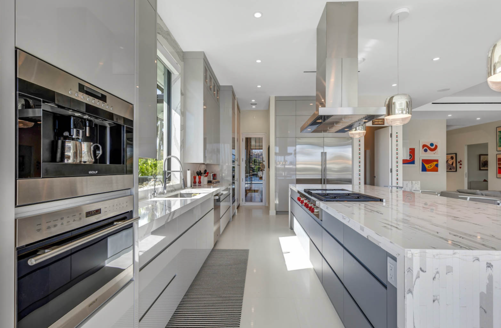 To infuse your Fort Lauderdale kitchen remodel with a luxury remodel style, opt for flat-paneled cabinets and top-of-the-line appliances — or hide them behind custom panels for a seamless look. Always opt for natural stones and polished tile or high-end hardwoods in classic shades. For walls, consider adding texture to play along with rich neutral tones like deep gray, warm white, and bronze.