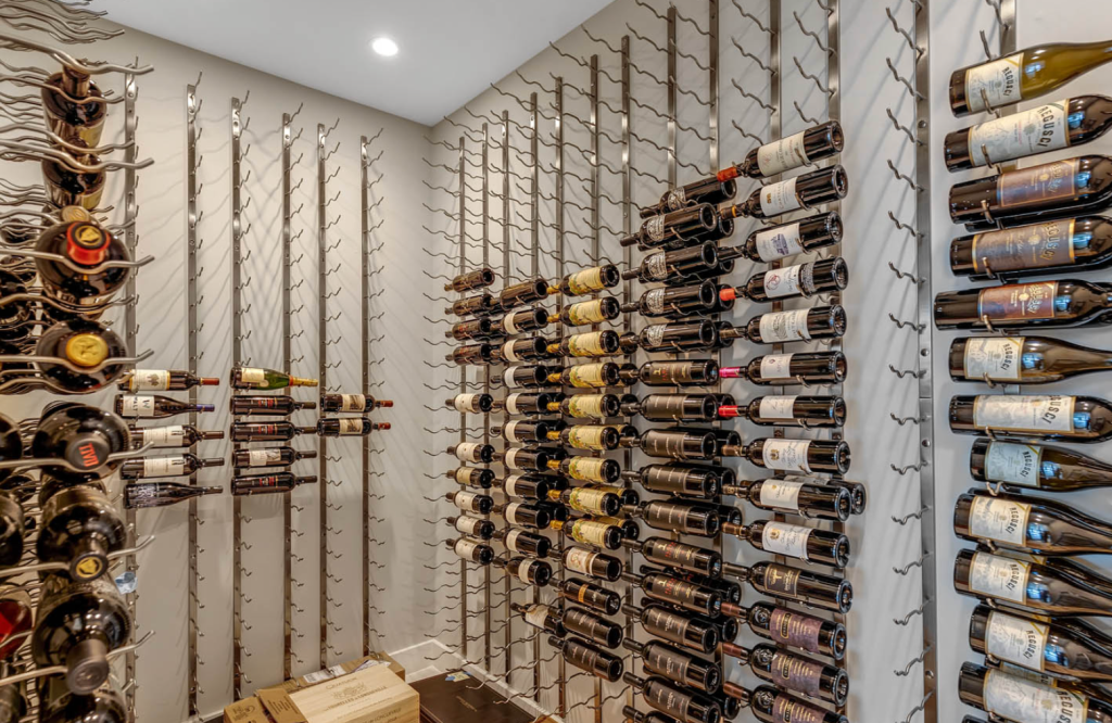 To get this look in your home, glass front cabinetry, natural stone or quartz countertops, and metallic pendant lighting bring a little Mediterranean flair into an otherwise modern space. Colorful art and stoneware crocks add the finishing touches, and a very European wine cellar completes this Mediterranean vibe.